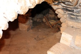 As you enter the house, you walk up a small staircase to the main room of the home (left). Over the cooking area are some tiny windows, and to the right is an opening to a bedroom (right). It could be used as a guest room while the family slept in the main room.
